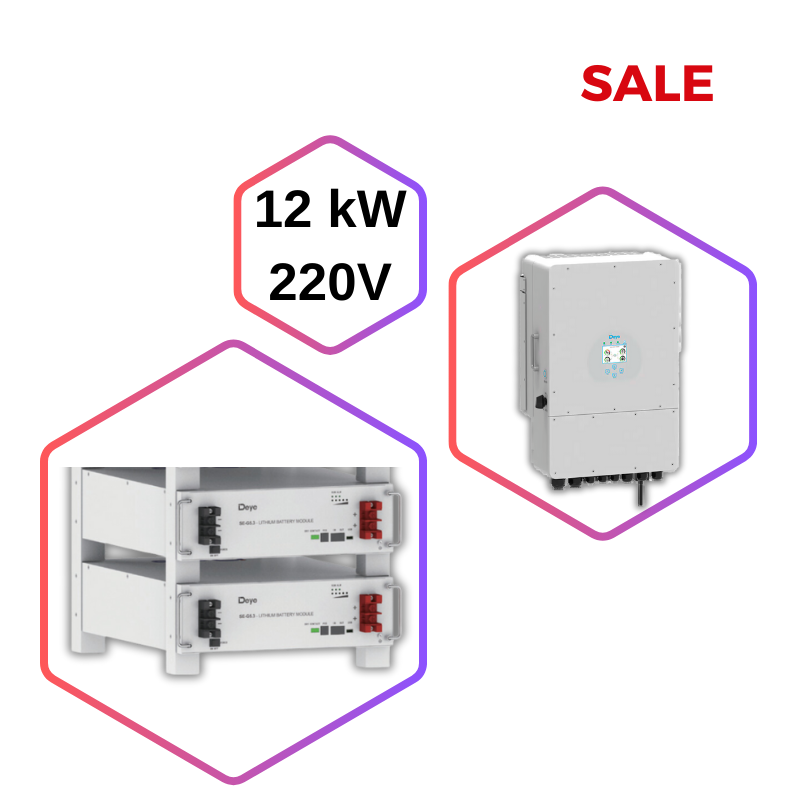 Комплект автономный солнечный инвертор 12 кВт и литий-железо-фосфатный аккумуляторной блок емкостью 10,6 кВт*ч предназначен для питания однофазной нагрузки мощностью до 12 кВт. Солнечный инвертор гибридного типа питает нагрузку от сети, аккумулятора и солнечных панелей. LiFePO4 безопасен для использования в жилых помещениях. АКБ литий-железо-фосфатного типа имеют отличные показатели циклов использования и быструю разрядку/зарядку. Инвертор и АКБ достаточно компактны для размещения в хоз. помещении или на закрытом балконе.